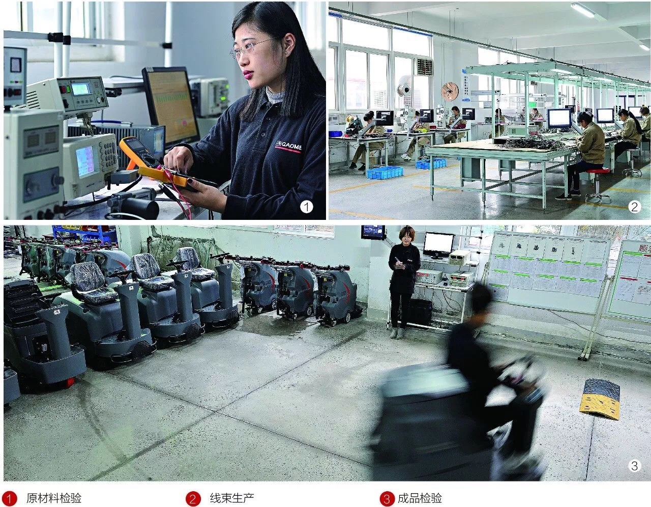 廠房面積15000㎡,員工202人的高美規(guī)格龐大,支撐起每月600-700臺的洗地機倉儲周轉(zhuǎn),且各項指標(biāo)皆中國領(lǐng)先:從進貨檢驗(IQC)到成品(FQC),實施全程品質(zhì)管理監(jiān)測,提前預(yù)警;關(guān)鍵零部件和整機激光打碼,產(chǎn)品操作流程全程視頻錄像,結(jié)合流水線生產(chǎn)方式和ERP管理系統(tǒng),從原材料進料到成品出庫全程可追溯。實現(xiàn)管理可視化、標(biāo)準(zhǔn)化、流程化。