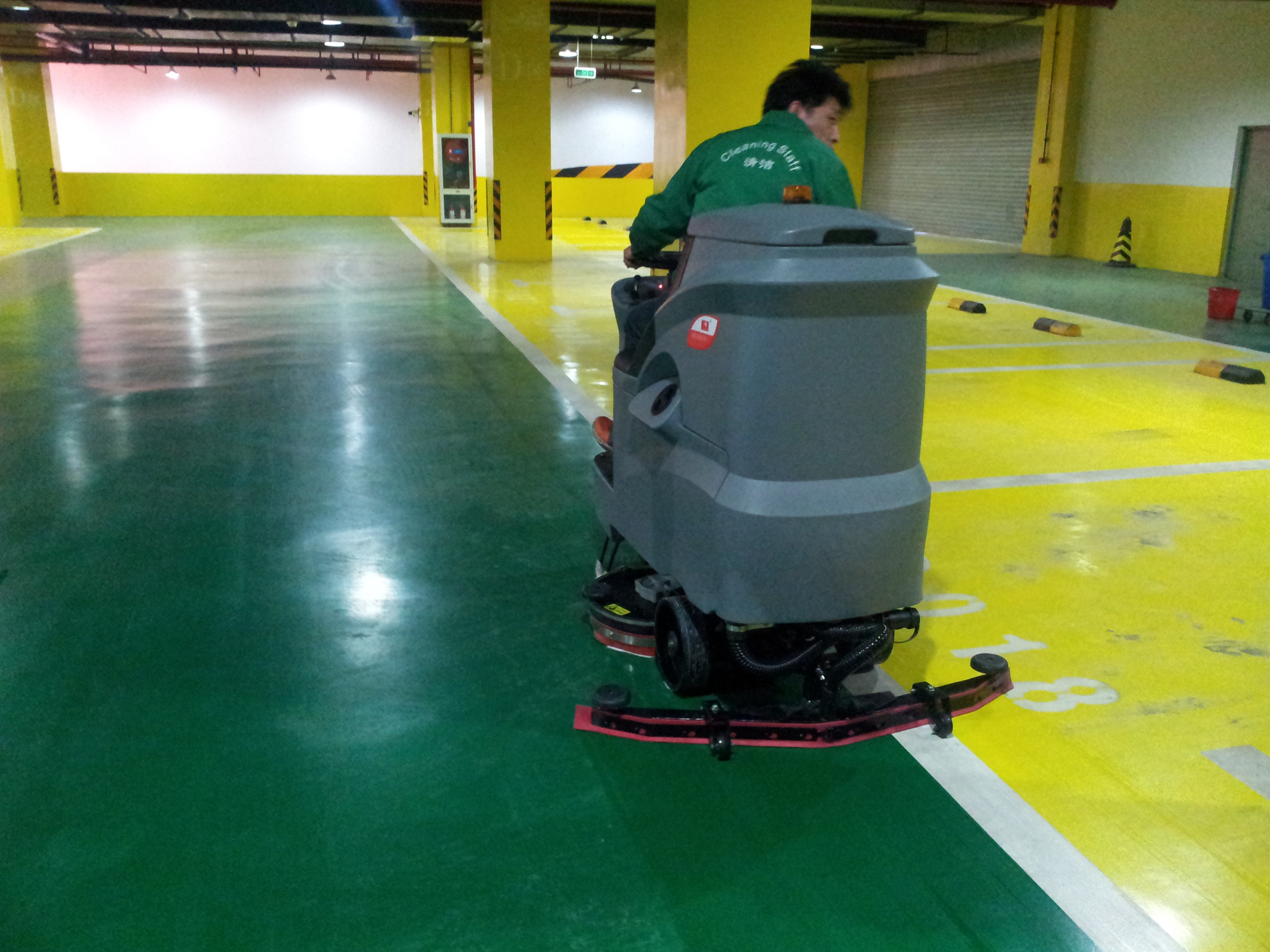 雖然大型駕駛式洗地機的效率高,車身也大,但是工人操作起來也只有兩個動作,方向盤+踏板,十分便捷。